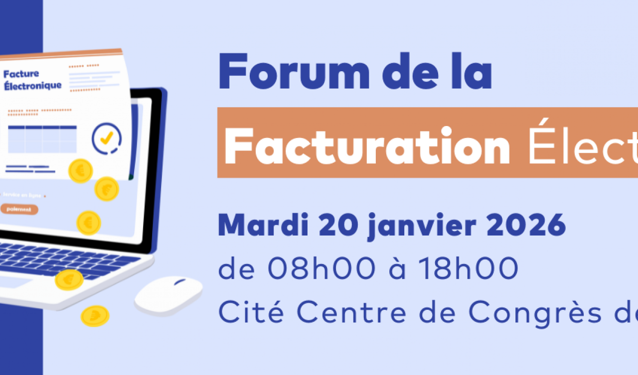 Forum Facturation électroniqueLa réforme de la facturation électronique arrive à grands pas, et avec elle, son lot de questions, de changements... mais aussi d’opportunités ! Pour vous accompagner dans cette transition, nous vous invitons à une journée exceptionnelle placée sous le signe de la clarté, de l’action et des solutions concrètes.Le 20 janvier 2026 de 8h à 18hCité Centre de CongrèsQuai Charles de Gaulle