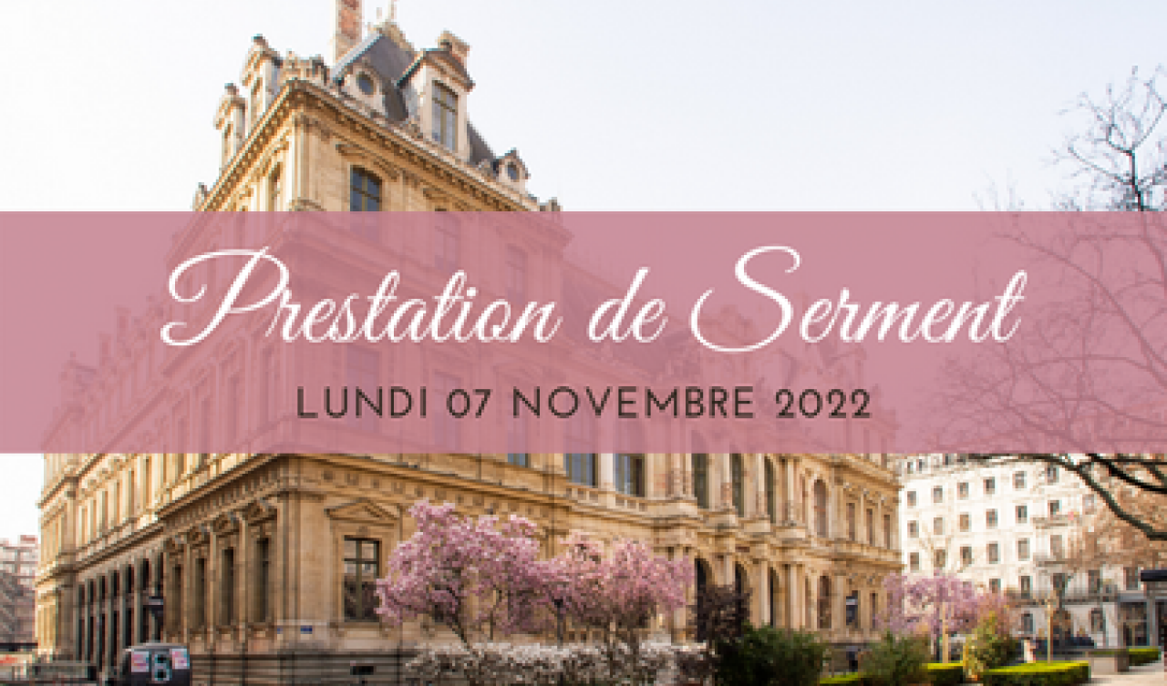 Prestation de SermentOdile DUBREUIL, Présidente, les conseillers régionaux et toute l’équipe de l’Ordre des Experts-Comptables Auvergne-Rhône-Alpes ont le plaisir de vous convier à la cérémonie de Prestation de Serment, le lundi 07 novembre 2022 à 18H30, au Palais de la Bourse (Place de la Bourse, 69002 Lyon).